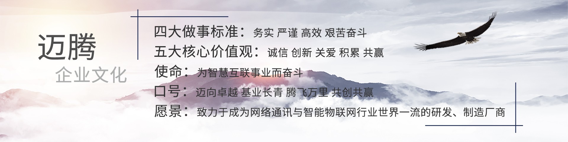 深圳市邁騰電子有限公司(簡(jiǎn)稱(chēng)邁騰),成立于2008年2月,是一家專(zhuān)注于網(wǎng)絡(luò)通訊與物聯(lián)網(wǎng)產(chǎn)品開(kāi)發(fā)、生產(chǎn)、銷(xiāo)售及服務(wù)為一體的國(guó)家級(jí)高科技企業(yè)。目前是國(guó)、內(nèi)外網(wǎng)絡(luò)通訊與物聯(lián)網(wǎng)行業(yè)前列的研發(fā)、制造廠(chǎng)商。